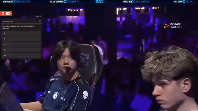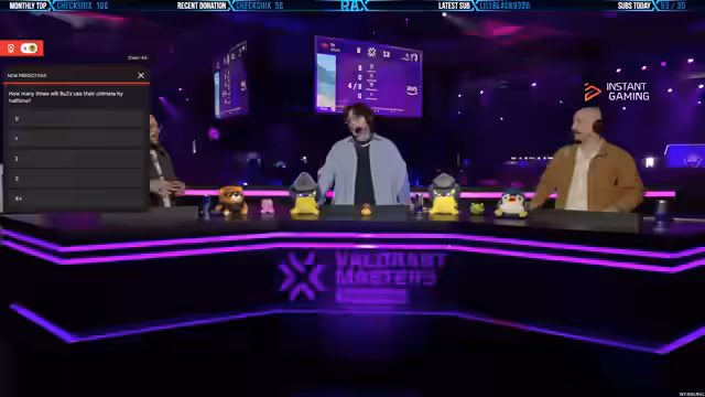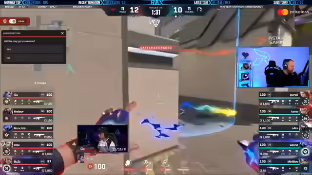 00:12:21Nach einem überraschenden Comeback von Paper Rex, das das Spiel vom 3:0 in einen 9:4-Vorsprung für PRX dreht, intensiviert sich das Match. Der Kommentator lobt die Performance von Valen von Paper X, der einen 1v4-Klang vollbringt und die Runde für sein Team holt. Parallel zur laufenden Partie wird eine Wette für den Ausgang der ersten Map eröffnet, bei der man für einen möglichen ArcGrader-Spender tippen kann, was die Interaktion mit dem Chat fördert und das Engagement erhöht.
