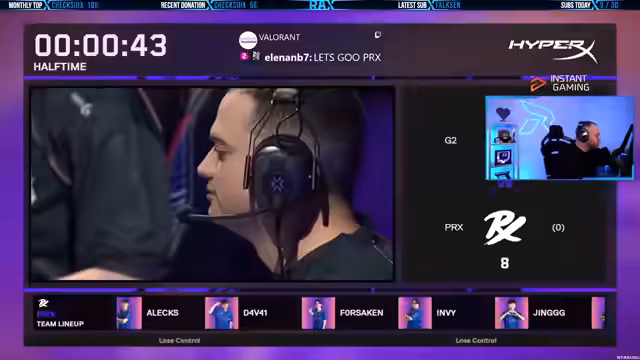 00:00:00Der Stream beginnt mit der Vorstellung des anstehenden Matches zwischen G2 und Paper Rex (PRX). Der Kommentator hebt hervor, dass beide Teams sehr unterschiedlich agieren, wobei Paper Rex aggressiver und G2 strukturiert spielt. Die Geschichte dieses Duells wird als faszinierendes Storytelling in Echtzeit bezeichnet. Zudem wird der Interview-Ausschnitt mit Forsaken von Paper Rex gezeigt, in dem dieser auf den Begriff 'Smeak' eingeht, ein Wort, das von G2-Spieler Babybay popularisiert wurde und "schrauben" bedeutet. Dies mündet in eine Diskussion über den "OG W-Gamer"-Titel zwischen den beiden IGLs.