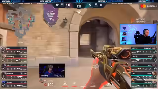01:01:28Nach dem Sieg von Paper Rex auf der ersten Map Split beginnt die zweite Map Corrode. Der Streamer bezeichnet Corrode als eher weniger spannend und beklagt die Abwesenheit von Maps wie Ascent und Lotus aus dem Pool. Während des Spiels interagiert er intensiv mit der Community, indem er erinnert, sich für den monatlichen Giveaway einzuschreiben und neue Prime-Abonnenten persönlich begrüßt. Auch die Diskussion über ranked-geeignete Maps wird wieder aufgegriffen und die Meinung der Zuschauer eingeholt.