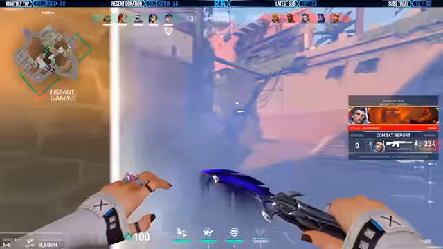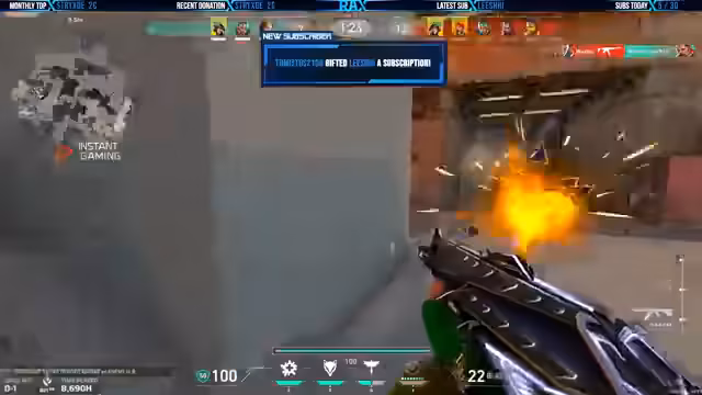 01:08:02Für das laufende Giveaway wird die Teilnahme im Chat beworben. Die Zuschauer werden aufgefordert, sich einmal pro Monat über den bereitgestellten Link einzutragen, um monatliche Chancen auf Gewinne zu haben. Des Weiteren wird eine Partnerschaft mit Instant Gaming vorgestellt, die als Sponsor für das Giveaway fungiert. Der Streamer empfiehlt den Zuschauern, bei Instant Gaming einzukaufen, da es durch Rabatte günstigere Preise für Valorant-Guthaben bietet und langfristig spart.