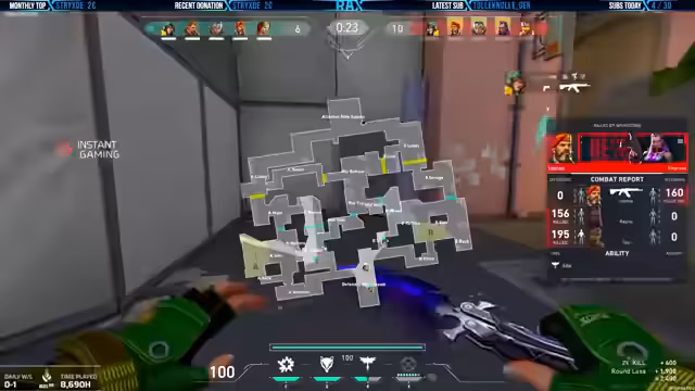 01:32:11Im Fokus des Streams standen komplexe taktische Entscheidungen in Valorant. Der Streamer analysierte intensiv die gegnerischen Plays und diverse Lagen, insbesondere auf der Karte. Dabei wurden verschiedene Pläne für Attacken auf die A- und B-Seite diskutiert. Es wurden spezifische Fähigkeiten wie Rauchgranaten, Stuns und der Einsatz von Ultimate-Fähigkeiten zur Deckung von Spielfeldbereichen abgestimmt, um das Spielfeld für den Teamangriff vorzubereiten.