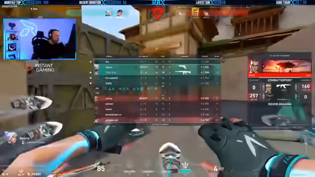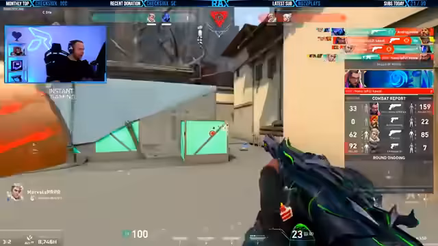 05:31:13Der Fokus liegt auf intensiven taktischen Entscheidungen im Spiel Valorant. Der Streamer analysiert die Gegnerpositionen, plant Pushes und gibt klare Anweisungen an sein Team. Es werden verschiedene Strategien für Seiten A, B und Mitte erprobt, einschließlich Smokes, Flashes und Koordinationsmanövern. Runden werden aggressiv, aber auch defensiv gespielt, wobei die Anpassung an die gegnerischen Aktionen im Vordergrund steht.