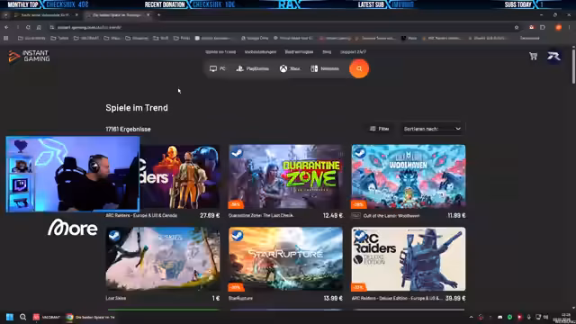 03:14:01Der Stream bewirbt ausführlich die Sparangebote von Instant Gaming. Es werden Bundles vorgestellt, bei denen man bis zu 17% sparen kann. Der Streamer erklärt, dass die Seite nicht nur für Valorant-Guthaben, sondern für Spiele und Guthaben auf verschiedenen Konsolen geeignet ist. Er bittet die Zuschauer, seinen Partnerlink als Bookmark zu speichern, um ihm zu supporten. Der Support für den Streamer durch die Nutzung des Links ermöglicht es ihm, mehr Geld für Giveaways bereitzustellen und die Partnerschaft aufrechtzuerhalten, was für beide Seiten Vorteile bietet.
