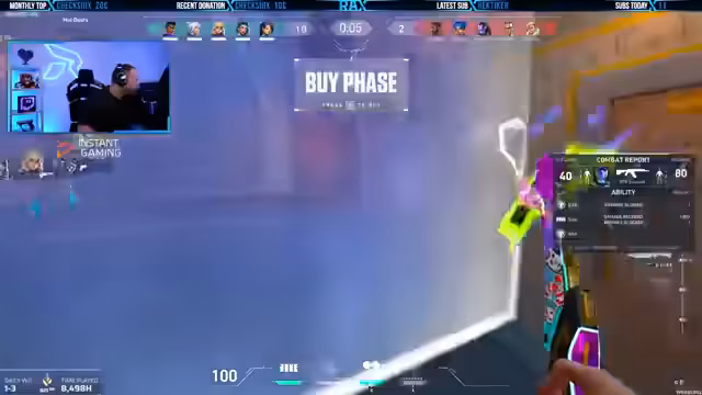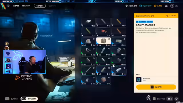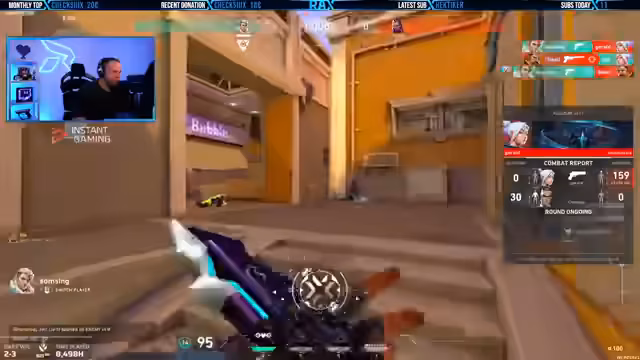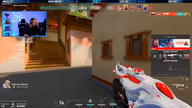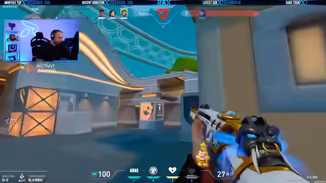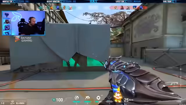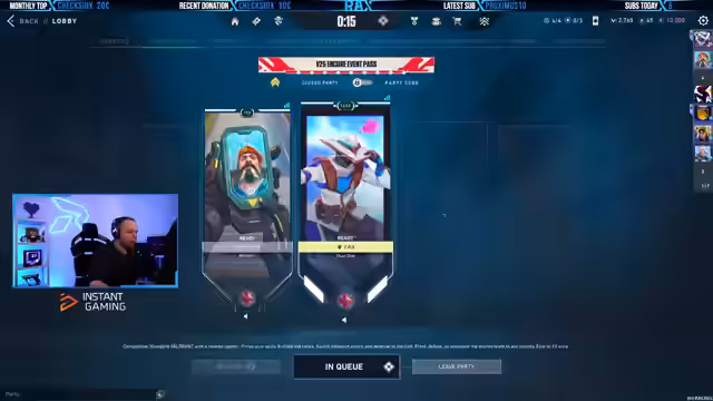 02:09:59Der Streamer kündigt ein Giveaway an: 15 Euro Welle-Guthaben für Viewer, die Twitch-Follower sind und den Instant-Gaming-Link nutzen. Während des Valorant-Spielens diskutiert er Charakter-Strategien, wie etwa aggressives Playstyle mit Agenten wie Chamber oder Clove. Er erwähnt den Battle Pass und kritisiert, dass viele Zuschauer ihn noch nicht haben, und fordert auf, im Chat zu schreiben, was man mit dem Guthaben machen würde.