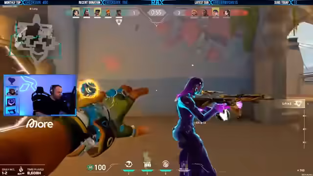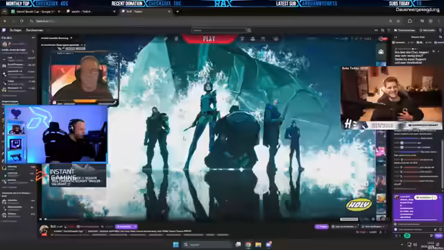 00:54:02Der Streamer gibt Einblicke in den anstehenden HarmII Cup. Es nehmen vier Teams teil, wobei zwei Teams verpflichtend die neue Bandit-Waffe einsetzen müssen – eine Entscheidung, die er als 'katastrophal' kritisiert. Er erwähnt, dass detaillierte Informationen auf dem Twitter-Kanal von Valorant.de zu finden sind. Die Turnierregeln sehen vor, dass ein Teammitglied auf einem Truck platziert ist und die Möglichkeiten für Greenbox-Smokes besprochen werden.