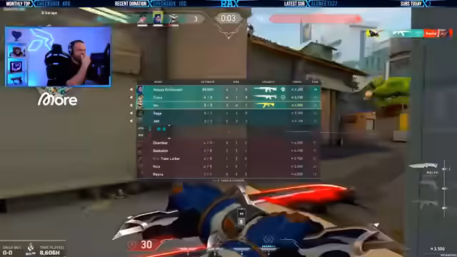 03:03:46Der Streamer diskutiert mit dem Team die Map-Auswahl für die anstehenden Spiele. Es werden Optionen wie Haven, Bind, Abyss und Pearl besprochen, wobei Bind als bevorzugte Map hervorgehoben wird. Abyss wird als ungewünscht eingestuft, und es folgt eine detaillierte Analyse der Veto-Strategie: Man erwägt, Veto dem Gegner zu geben, um dessen Agent-Auswahl zu beschränken, insbesondere da Veto ein Sentinel ist. Dabei werden Überlegungen zu Team-Kompensationen angestellt, etwa durch die Wahl von Cypher oder anderen Agents, um die Balancierung des Teams zu gewährleisten und auf die voraussichtliche Spieltaktik der Gegner reagieren zu können.