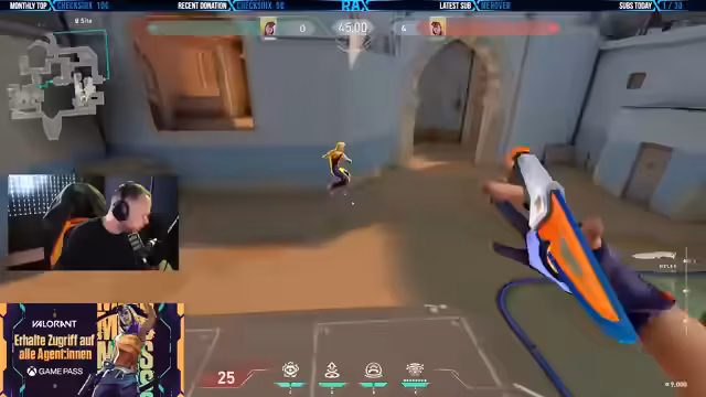 00:17:05Die Ankunft in XPERION Berlin und der Streambeginn stehen im Mittelpunkt. Nach Ankunft und Check-in im Hotel wird das Eventgelände erkundet, das mit dem neuen Banner des Agenten Mix beeindruckt ist. Der Hauptplan des Streams ist, den neuen Agenten Mix gemeinsam mit Maluna zu testen, alle seine Fähigkeiten zu erklären und später Spike Rush oder andere Modi mit anwesenden Spielern zu spielen.