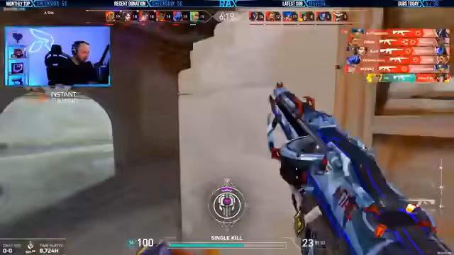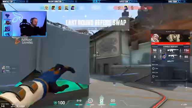 00:24:09Während eines aktiven Spieles auf der Haven Map führen der Streamer und sein Mate eine detaillierte Taktik durch. Sie planen einen Push auf B mit gezieltem Flash-Einsatz, der Gegnerpositionen und mögliche Fallen analysiert wird. Trotz der guten Strategie kommt es zu kritischen Fehlern im Timing und der Positionierung, was zum Verlust der Runde führt und den Streamer verärgert.