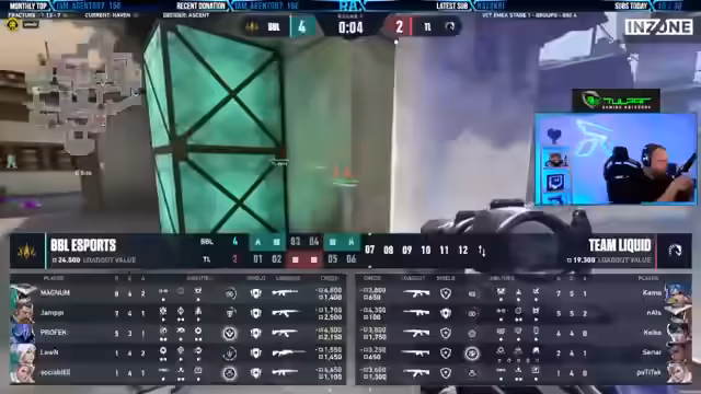 05:31:10Nach dem deutlichen Sieg von Liquid wechselt der Stream zur Map Ascent. Der Kanal vermutet, dass BBL nun gezwungen ist, aggressiver zu agieren und ein anderes Line-up zu wählen. Liquid zeigt auf Ascent ebenfalls eine starke Performance, indem sie eine Runde mit einer sehr guten Nutzung des Utility-Agents Jinx gewinnen. Es wird die Frage aufgeworfen, ob BBL überhaupt noch eine Chance hat, das Spiel zu drehen, nachdem sie so klar auf Haven verloren haben.