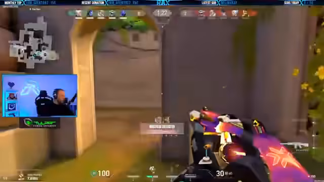 08:08:15Das Spiel wird durch schnelle, effektive Aktionen entschieden. Eine Situation zeigt, wie ein Spieler durch eine schnelle Teleportation und ein präzises Ziel einen freien Kill erzielt. Der folgende Angruf der Gegner durch eine Teleportation wurde durch eine gut platzierte Falle, die ebenfalls zerstört wurde, bestraft. Dieser erfolgreiche Rundenverlauf beschert dem Team den entscheidenden Punkt. Der Streamer prognostiziert nun den Beginn der dritten Map und bittet das um zuschauende Community um weitere Erfolge.