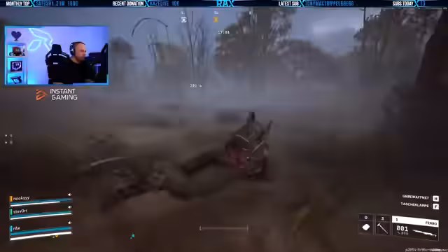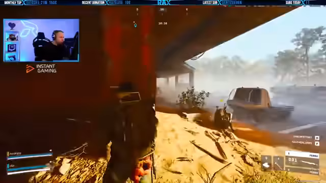 03:27:36Der Streamer befindet sich in heftigen Kämpfen mit diversen Gegnern, darunter aggressive Drohnen und riesige Feinde. Er verliert dabei wiederholt seine Ausrüstung und muss seine Position ständig ändern. Die Spielsituation ist geprägt von hohem Druck und unerwarteten Gefahren, was zu Frustration und ständigen Bewegungen auf der Karte führt. Die Action ist intensiv, wird jedoch durch wiederholte, nicht behobene Spielabstürze unterbrochen, die den Fortschritt massiv behindern.