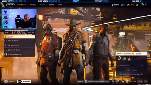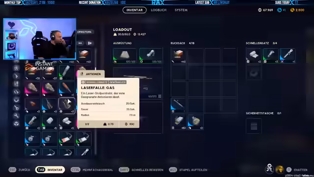 03:14:46Ein Spieler, der sich als Informatiker vorstellt, stellt Fragen zur Spielmechanik, insbesondere zum Starten mit einem leeren Loadout und der Funktionsweise von 'Gratis-Loadouts'. Es wird erklärt, dass ein 'angepasstes Loadout' die eigenen Inventargegenstände nutzt, während ein 'Gratis-Loadout' eine zufällige Waffe und Standardausrüstung bereitstellt, ideal zum Sammeln von Loot ohne Risiko. Der Streamer betont, dass er das Spiel sehr genießt und gerne Fragen beantwortet, da er sich als erfahrenen Spieler auf Level 17 betrachtet. Es wird auch die Möglichkeit erwähnt, Spiele über Instant Gaming zu kaufen, wobei darauf hingewiesen wird, den Affiliate-Link des Streamers zu nutzen, um ihn zu unterstützen. Die Spieler diskutieren weiterhin über die Beschaffung von 'Spitzelscannern', die von fliegenden Drohnen fallen gelassen werden, und die Notwendigkeit, Quest-Gegenstände wie 'synthetischen Treibstoff' zu finden.