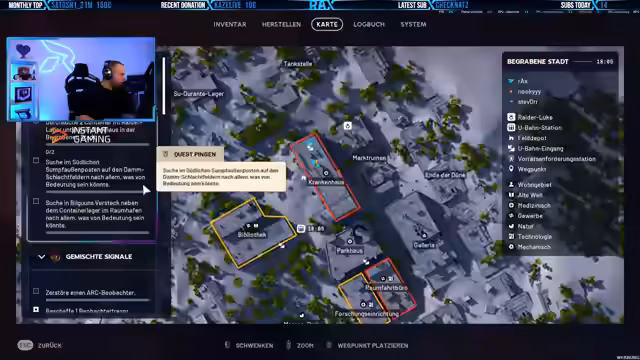 01:01:33Der Streamer erklärt das Konzept des „Gratis-Loadouts“, bei dem man kostenlos mit einer zufälligen Waffe, einem billigen Heilmittel und einem kleinen Rucksack in eine Runde starten kann. Diese Option ermöglicht es, ohne finanzielle Risiken ins Spiel einzusteigen. Das Team entscheidet sich für einen Run zum Testanbau, um Medizinsachen zu finden. Währenddessen werden Quests wie das Zerstören von Wespen, das Zufügen von Zecken- und Raiderschaden sowie der Besuch eines Felddepots besprochen. Die Quest-Markierungen können gepingt werden, um sie für alle Teammitglieder sichtbar zu machen. Bei der Ankunft am Zielort kommt es zu einem unerwarteten Angriff von Gegnern, die sich auf einem Berg versteckt haben und das Team einkesseln. Trotz der Bemühungen wird das Team von den Gegnern eliminiert, die wahrscheinlich besser ausgerüstet waren als das Gratis-Loadout-Team. Der Streamer nimmt die Niederlage sportlich und betont, wie viel Spaß ihm das Spiel macht und wie gut es umgesetzt ist. Er lobt das flüssige Gameplay, das verständliche Hauptmenü und das Inventarsystem.