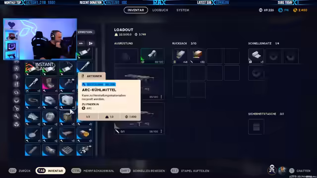 00:24:29Der Streamer empfiehlt, ArcRaiders über Instant Gaming zu beziehen, da es dort 25 % günstiger ist. Er erklärt, wie man das Inventar im Spiel verwaltet und welche Gegenstände man verkaufen kann. Er weist darauf hin, dass Gegenstände mit einem Diamantsymbol am unteren linken Rand immer verkauft werden können, da sie nur Geld einbringen. Für grüne Gegenstände ist er sich manchmal unsicher, ob sie später noch benötigt werden, aber er rät dazu, Gegenstände, die zur Herstellung verwendet werden, zu behalten. Ein wichtiger Tipp ist das Erledigen von Quests und das Upgraden der Werkstatt, Gebrauchsgegenstandsstation, des medizinischen Labors, der Sprengstoffstation und des Veredlers. Er erklärt, dass man die benötigten Ressourcen für Upgrades verfolgen kann, indem man auf 'Ressourcen verfolgen' klickt. Dadurch wird ein Augensymbol über den benötigten Gegenständen angezeigt, was signalisiert, dass diese nicht verkauft werden sollten. Dies gilt auch für Gegenstände, die für das 'Huhn' (eine Art Haustier oder Sammelmechanismus) benötigt werden.