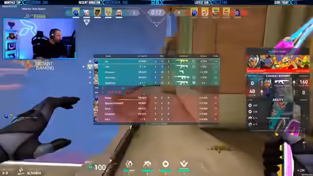 00:18:18Während des Matches auf Breeze koordiniert der Streamer intensiv mit dem Team, nutzt Agenten-Fähigkeiten wie Smokes und Flashes strategisch und analysiert die gegnerische Cypher-Setups. Erfolgreiche Plays führen zu mehreren Runden-Gewinnen, während er gleichzeitig die Toxizität einiger Gegner anspricht und die Wichtigkeit von Teamkommunikation hervorhebt.