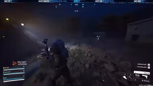 01:35:35Feindliche Spieler schleichen sich von unten an, was schnell bemerkt wird. Die Gruppe markiert die Positionen der Gegner und bereitet sich auf die Verteidigung vor. Es wird beschlossen, die Angreifer nicht sofort zu konfrontieren, sondern abzuwarten, bis sie sich zeigen. Ein Spieler bemerkt, dass die Gegner auf dem Dach sind und versucht, sie von oben zu eliminieren. Nach einem kurzen, aber heftigen Feuergefecht gelingt es der Gruppe, mehrere Gegner auszuschalten. Ein Gegner, der einen Karabinerhaken dabeihatte, wird eliminiert. Die erfolgreiche Abwehr der feindlichen Spieler verschafft der Gruppe wertvolle Munition und Heilgegenstände, die sie für die weitere Quest benötigen.