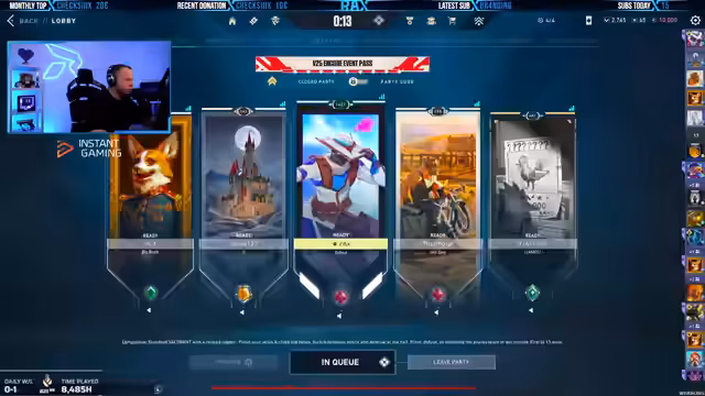 05:47:20Nach der Werbepause wird ein neuer Lobby-Code (NIA468) für den 5-Stack-Betrieb veröffentlicht. Gleichzeitig wird an den Prime-Gaming-Service erinnert, dessen monatliche Vorteile genutzt werden können. Es wird betont, dass heute Community-Sonntag ist und weiterhin im 5-Stack-Modus gespielt wird, um den Community-Tag zu unterstützen.