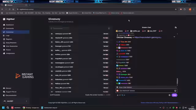 00:54:15Ein großes Giveaway wurde angekündigt, bei dem die Zuschauer die Chance haben, ein Spiel ihrer Wahl zu gewinnen, wie zum Beispiel Battlefield 6. Der Streamer betont, dass die Gewinnchancen erhöht werden, wenn die Zuschauer mehrere Plattformen wie Discord, Instagram, Twitter und Facebook von Instant Gaming folgen. Für das Eintragen gibt es auch Punkte, die gesammelt werden können. Der Link zum Giveaway wurde in den Chat gepostet.