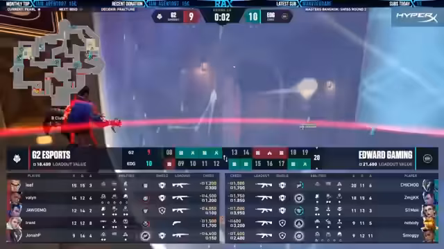 04:10:35EDG führt mit 24-18. Es wird die leistungsstarke EDG-Spieler Chichu erwähnt. EDG greift die A-Seite an, während Chichu verteidigt, was als eher lockeres Setup beschrieben wird. G2 versucht, Informationen über die Mitte zu sammeln. Gleichzeitig wird ein Fehlverhalten von EDG-Spieler Valon analysiert, das G2 eine Möglichkeit gab, in das Spiel zurückzukehren.