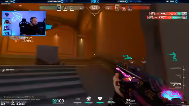 02:56:48Im Verlauf des Spiels treten bekannte Valorant-Profis wie der exzellente Aimer Sayonara und der sehr erfolgreiche Spieler Chronicle gegen das Team des Streamers an. Dieses Zusammentreffen von sehr hohem Spielniveau sorgt für Aufregung und wird als "krass" und "geil" beschrieben. Chronicle ist dabei der Partner des Teams Vitality, das als eines der besten der Welt gilt. Für den Streamer ist es eine besondere Ehre und ein guter Test, gegen diese Spieler zu antreten.
