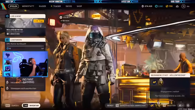 06:32:58Das Spiel wird als Extraction Shooter beschrieben, bei dem es darum geht, Loot zu sammeln, gegen andere Spieler zu kämpfen und mit mehr Loot wieder herauszukommen, während man nebenbei Quests erledigt. Die Spieler planen, in die Buried City zurückzukehren, um dort Quests zu erledigen, darunter das Finden eines verlassenen Straßenlagers und das Suchen nach Anzeichen von Überlebenden. Es wird auch eine Mission erwähnt, bei der eine Bolette zu einem geheimen Waffenlager gebracht werden muss. Die Gruppe diskutiert über die Effizienz von Waffen und die Wichtigkeit, Schlüssel für bestimmte Bereiche mitzunehmen. Es wird die Langzeitmotivation des Spiels hervorgehoben, die durch ein Rangsystem und regelmäßige Events, neue Maps, Items, Waffen und NPCs gegeben ist. Das Spiel wird als "perfekt" und "richtig nice" beschrieben, insbesondere für Spieler, die nach Valorant ein fesselndes Spiel suchen. Die Spieler äußern Frustration über das Verhalten anderer Spieler, die oft unfreundlich sind und angreifen, auch wenn man nur Quests erledigen möchte. Es wird über die Möglichkeit gesprochen, Baupläne zu farmen und welche Orte dafür am besten geeignet sind. Die Gruppe plant, weitere Quests im Spaceport und in den Grandiose Apartments zu erledigen, darunter das Suchen nach Dünger auf dem Dach und das Finden von Aufzeichnungen in einem medizinischen Untersuchungsraum. Es wird auch über die Notwendigkeit gesprochen, Geld zu sparen und die Werkbank zu optimieren, um Gegenstände günstiger herstellen zu können. Die Spieler sind sich bewusst, dass sie in laufende Runden geraten können, was zu unfairen Kämpfen führen kann. Sie diskutieren über das Spawnverhalten von Spielern und die Notwendigkeit, immer wachsam zu sein. Die Gruppe plant, ihre Quests abzuschließen und sich auf zukünftige Raids vorzubereiten, wobei sie die Möglichkeit in Betracht ziehen, mit einer Venator-Waffe erneut in den Kampf zu ziehen. Es wird auch über die Möglichkeit gesprochen, Skins zu kaufen und den Shop leer zu räumen.