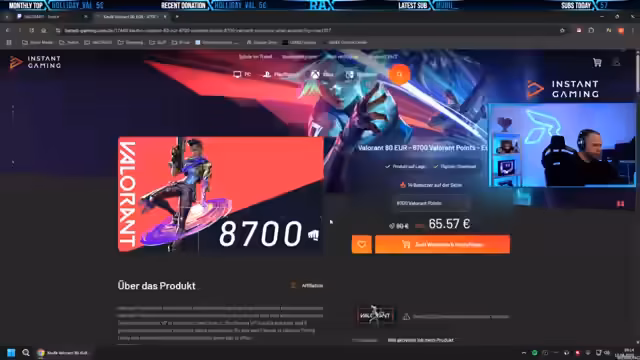 05:33:32Der Streamer kündigt eine neue Partnerschaft mit Instant Gaming an. Über einen speziellen Link können Zuschauer Valorant-Punkte und Spiele bis zu 18% günstiger erwerben. Der Streamer betont, dass dieser Schritt für alle ein Win-Win ist: Die Zuschauer sparen Geld, er kann als Partner länger bleiben und mehr Giveaways veranstalten. Es wird genau erklärt, wie der Rabatt-Link funktioniert und genutzt werden muss.