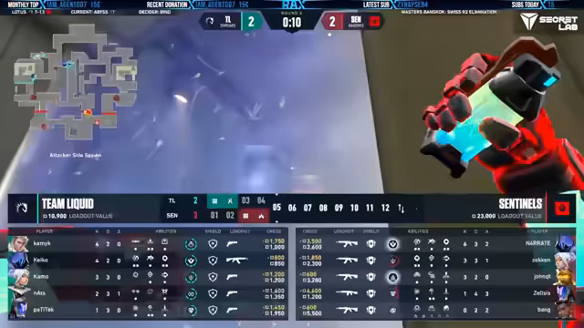 02:14:18Team Liquid wird vorgeworfen, die Strategie von DRX kopiert zu haben, um eine ihrer schwächsten Maps, Lotus, zu verbessern. Dies ähnelt der Methode, mit der sie in der Pearl die Strategie von Sentinels übernahmen. Während der laufenden Partie wird kritisch angemerkt, dass das Publikum überwiegend für Sentinels sei, was den Kommentator überrascht, da bei Caster-Events oft eine stärkere Community-Anbindung zu den nordamerikanischen Teams zu erwarten wäre. Dies wird als Unterschied zu anderen Ligen wie der Dachliga gesehen, wo das Publikum durch längere Phasen ohne Spielereignisse vergrault werden könnte.