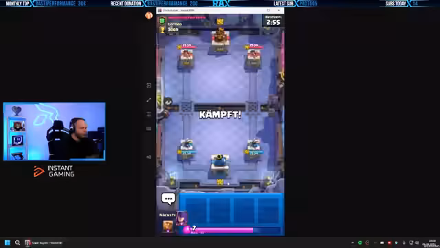 00:01:53Der Streamer startet entspannt ins Wochenende mit Frühstück und einem Spaziergang mit dem Hund. Er plant eine 5-Stack-Ranked-Session zum Spaß mit der Community. Es wird überlegt, nach einer Solo-Queue-Runde direkt mit dem 5-Stack zu beginnen. Clash Royale wird als weitere Option für gemeinsame Spiele erwähnt, wobei die Community Tipps und Hilfe anbieten kann. Es wird überlegt, später am Tag auch Clash Royale zu streamen, da es im Moment viel Spaß macht und die Zusammenarbeit mit der Community im Vordergrund steht. Der Streamer betont, wie cool es ist, sich gegenseitig Tipps zu geben und Decks zu verbessern. Es wird kurz über das eigene Clash Royale Deck gesprochen und die Möglichkeit, ChatGPT für Verbesserungsvorschläge zu nutzen. Der aktuelle Deck besteht aus Babydrache Level 12, Riese Level 10, Skelettarmee Level 10, Musketier Level 10, Hoboltkäfig Level 9, Hexe Level 10, Feuerball Level 11 und Knall Level 12.