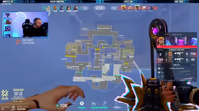 00:02:02Während des Streams gibt es zahlreiche Interaktionen mit der Community, darunter das Verschenken von Subs, was zu einem 'Hype Train' führt, der bis Level 6 ansteigt. Der Streamer erwähnt die kommenden 'Gifted Subs' im September, bei denen Zuschauer, die fünf Subs verschenken, eine zufällige Anzahl zusätzlicher Subs von Valorant gewinnen können. Er erläutert auch, dass Zuschuber durch das Verschenken von Subs ein spezielles Valorant VCT-Badge auf ihrem Twitch-Profil freischalten können, welches nicht mit Prime-Subs verfügbar ist. Darüber hinaus wird ein Giveaway für Spiele im Wert von bis zu 100 Euro beworben, bei dem Teilnehmer jeden Monat gewinnen können.