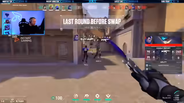 00:02:28Der Stream startet mit einer Begrüßung zum Mittwoch. Der Streamer plant, Valoant zu spielen und erwähnt ein früheres Collaboration-Projekt mit Tobi. Er beginnt das Spiel mit einem Fokus auf den Operator, den er als stärkste Waffe im Spiel ansieht, und spielt auf dem Map Chamber, wobei er auf einen Sieg in der Kreisliga hofft. Es folgen erste taktische Aktionen, wie das Brechen von Linien und das Spielen als Initiator.
