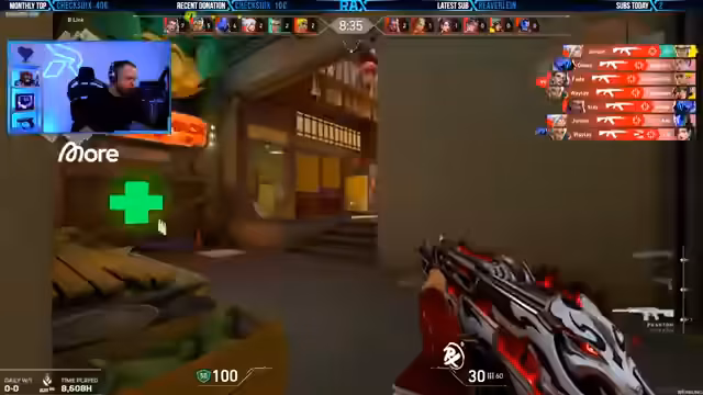 00:00:54Der Stream beginnt mit einem Match-Found-Sound in einem Deathmatch-Modus, der als Warm-up dient. Kurz darauf folgt die Begrüßung des Publikums und das Durchgehen der monatlichen Subs, darunter ein Fan, der seit 41 Monaten dabei ist, was als Zeichen von Treue gewürdigt wird. Es wird klar, dass der Fokus auf der gemeinsamen Zeit liegt, nicht auf Abos. Dieser erste Teil setzt den Ton für den kompetitiven, aber unterhaltsamen Character des Streams, in dem der Streamer direkt in die erste Runde eines Matches startet.