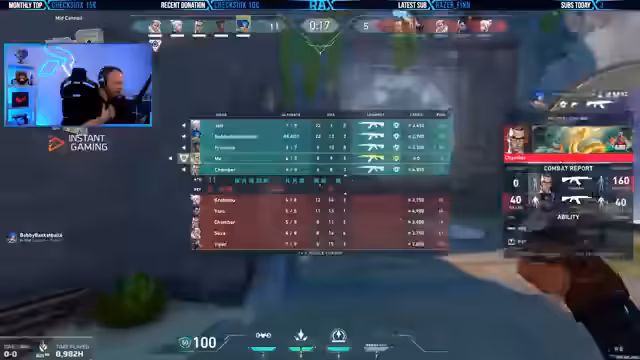 00:15:26Während des Streams wird ein Spieler gemeldet, der des Betrugs verdächtigt wird. Nach mehreren Reports wird der tatsächlich gebannt, was der Streamer als Bestätigung für seine Effektivität als Valorant-Partner ansieht. Die Valorant-Runden werden intensiv gespielt, mit taktischen Analysen und Diskussionen über Spielmechaniken. Der Streamer ärgert sich über teilweise unkoordinierte Mitspieler, wodurch Runden verloren gehen.