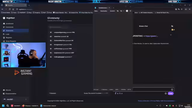 02:07:15Der Stream setzt auf 80er-Jahre-Musik, die gut bei der Community ankommt. Es wird ein weiteres Gewinnspiel mit 10 Euro Guthaben gestartet, bei dem Teilnehmer eine Zahl zwischen 1 und 7 raten müssen. Der Gewinner wird schnell gefunden. Der Streamer ermutigt die Zuschauer, an mehreren Giveaways teilzunehmen, einschließlich des Hauptgewinns der Maus und des monatlichen Instant-Gaming-Gewinns.