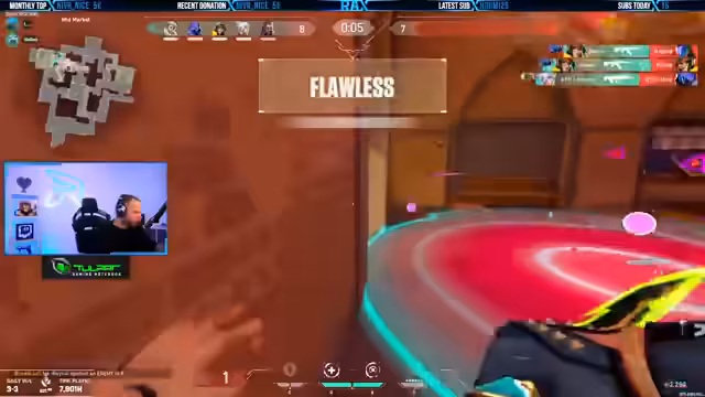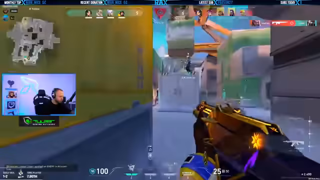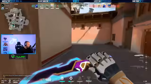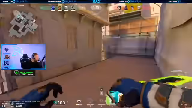 02:48:43Ein Gegner wird in der Mitte mit einer Orange identifiziert. Der Streamer fordert auf, eine Reveal zu setzen, während ein anderer Gegner in der Nähe ist. Es wird betont, dass das Team defensiv spielen sollte und B komplett als Afterflash spielen soll. Das Team kommuniziert über die gegnerischen Bewegungen und versucht, die Positionen der Gegner zu antizipieren.