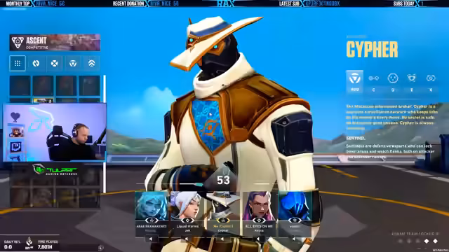 02:53:41Das Spiel neigt sich dem Ende zu, und der Streamer reflektiert die gespielte Runde. Er ist mit dem Match zufrieden, besonders da die Gegner in den Rängen Mortal und Descendant spielten. Er denkt über mögliche spielerische Alternativen nach, wie z.B. eine verrückte Claw, ist sich aber seiner Grenzen bewusst, was die Charakterwahl angeht. Er plant, im nächsten Spiel Gecko oder Breach zu spielen, um eine gute Fläche zu schaffen.