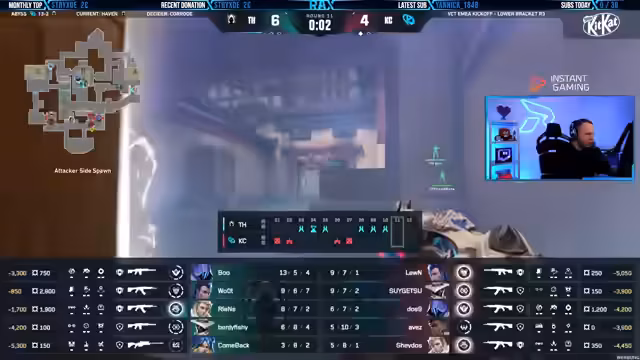 00:41:09Die Aufmerksamkeit kehrte zum VCT-Spiel zurück. Der Streamer analysiert nun detailliert die Spielzüge und Taktiken beider Teams. Er lobt die Proaktivität von Karmine Corp und kritisiert die Passivität und fehlende strategische Klarheit von Heretics. Parallel dazu werden im Chat aktuelle Nachrichten wie der Beginn des Night Market in Valorant und ein Vorfall mit einem verlorenen Ausweis diskutiert. Der Streamer interagiert stark mit der Community, beantwortet Fragen und nimmt an Diskussionen teil, was das allgemeine Zuschauererlebnis bereichert.