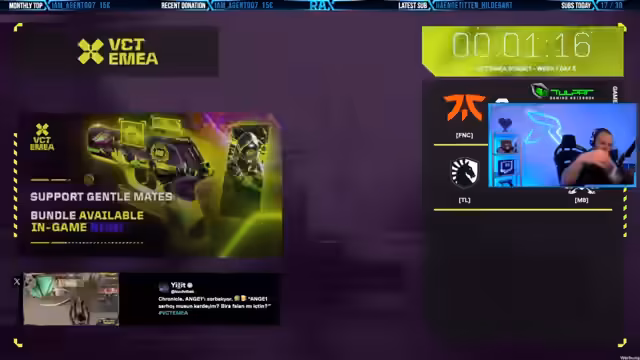 03:11:07Es wird über die Unterstützung durch die Freundin gesprochen, wobei die viele Zeit, die der Job kostet, als Nachteil genannt wird. Es wird überlegt, wann man mit ihr spielen kann, da man nach dem Valorant spielen am Tag keine Lust mehr hat, danach noch weiter am PC zu sitzen. Stattdessen möchte man lieber etwas anderes machen, rausgehen oder im Wohnzimmer chillen. Es wird erwähnt, dass Fnatic als Favorit für ein gewonnenes Spiel angesehen wird. Es wird über die Transferliste und News zu Spielertransfers gesprochen, wie z.B. Party Tech zu Liquid. Es wird erwähnt, dass Karmic jetzt bei Gentlemates spielt und direkt gegen sein Ex-Team spielt, was für ein spannendes Spiel sorgt. Es wird spekuliert, warum Karmic gegangen ist und ob es interne Probleme gab. Es wird überlegt, wie der Name Riesappt besser ausgesprochen werden kann. Es wird darüber gesprochen, dass Hiro ein sehr guter Spieler ist und dass er nervös sein wird, wenn er mit dem Team spielt.