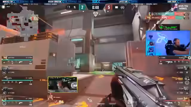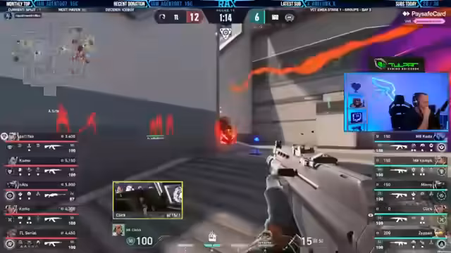 00:13:29Während eines laufenden Matches gibt es erste Kommunikationsschwierigkeiten. Der Streamer bemängelt einen falschen Smokes und einen Call, der ihm gefallen hätte, aber nicht umgesetzt wurde. Es kommt zu einem fehlgeschlagenen Move, bei dem der Gegner überlebt hat, was für Frust sorgt. Das Team scheint keine klare Strategie zu verfolgen, was zu einem "Team-Tiff" führt.