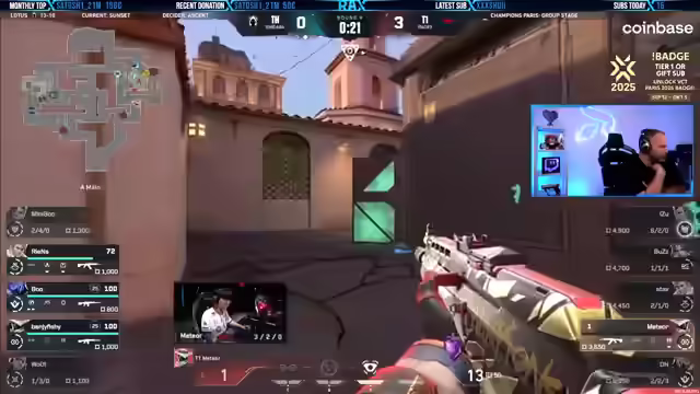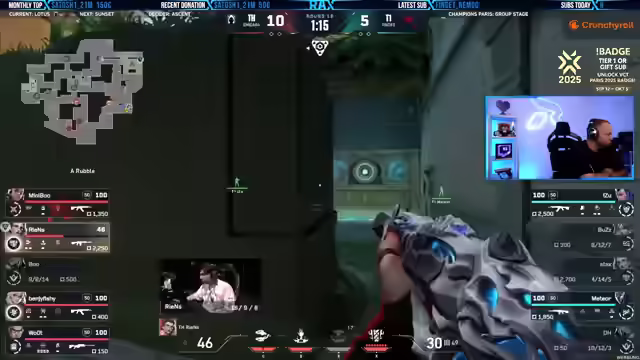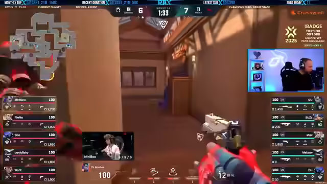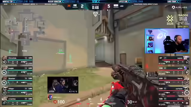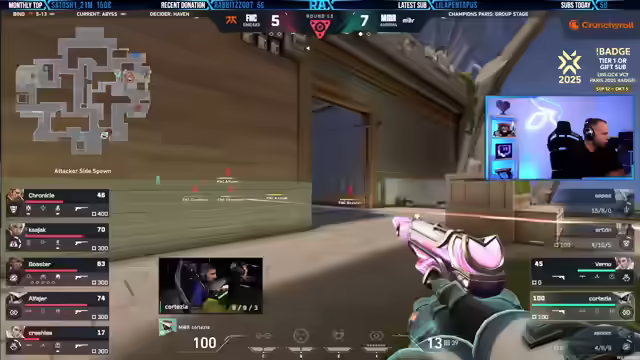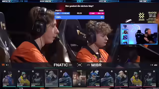 05:43:30MIBR zeigt ein überraschend starkes Spiel, während Fnatic Schwierigkeiten hat, ins Spiel zu finden. Der 19-jährige amerikanische IGL Verno von MIBR leistet hervorragende Arbeit beim Calling. Trotzdem, dass Bind eigentlich eine gute Map für Angreifer ist, gelingt es MIBR, die Oberhand zu gewinnen. Es wird empfohlen, sich die YouTube-Kanäle von Liquid und Fnatic anzusehen, insbesondere die Voice-Coms von Fnatic's erstem Spiel gegen G2. Der September wird als erfrischend für Streamer und Zuschauer hervorgehoben, da viele coole Events wie die Valorant Champions laufen. Der Streamer bevorzugt Watchpartys alleine mit den Zuschauern, da ihm zu viele Leute im Voice zu viel Unruhe verursachen.