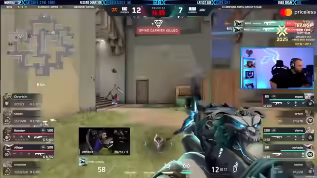 07:56:06Es wird angekündigt, dass Riot Mobile App eingeführt wird, um gegen toxische Leute und Zweitaccounts vorzugehen, aber leider erst ab 2026 in der EU. In NA soll dies jedoch schon im nächsten Patch umgesetzt werden. Es wird ein neues System mit Verifizierung erwartet, das als vielversprechend angesehen wird. Der Streamer betont, wie wichtig es ist, dass Fnatic jetzt ein paar Runden gewinnt. Es wird die hohe Anzahl an Ults bei MIBR erwähnt und Aspas' niedrige AP hervorgehoben. Fnatic wird für den riskanten Spielzug kritisiert, alle über Garage zu gehen. Es wird analysiert, dass Fnatic kaum noch Geld hat. Der Streamer drückt aus, dass es gut wäre, wenn Fnatic gewinnt, da er MIBR nicht in seinen Playoff-Vorhersagen hat. Es wird kommentiert, dass Boaster zu einfach stirbt und Alpha nur noch wenig HP hat. Die Wichtigkeit der nächsten Runde für Fnatic wird betont, da sie sonst kein Geld haben werden.