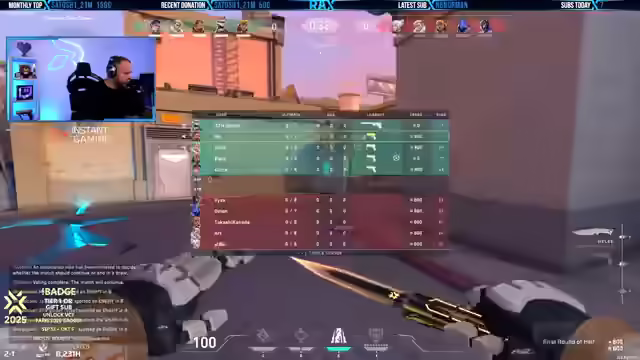 05:50:12Der Streamer spricht über Anfragen bezüglich Energie-Drink-Partnerschaften, ist sich aber unsicher, ob dies zur Community passt, da er selbst nicht täglich Energy-Drinks konsumiert. Er hatte bereits früher eine solche Partnerschaft. Partnerschaften mit Instant Gaming werden als ideal angesehen, da sie für jeden im Stream von Interesse sind. Der Streamer bedankt sich bei Diego für den Prime-Sub und erhöht die Lautstärke des Sounds im Valu-Stream entsprechend. Es wird über die Möglichkeit eines Bait-Rads mit Valorant Gifted Subs diskutiert, was besonders lustig wäre, wenn es mit Kill-Bounties verbunden ist. Bingo-Aktionen sind für die Playoffs geplant. Der Streamer pausiert aktuell mit Gym und gesunder Ernährung aufgrund von Bauchschmerzen, plant aber bald wieder damit anzufangen.