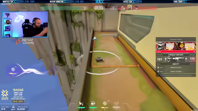 02:03:17Es stehen spannende Spiele mit Fnatic und Heretics bevor, wobei die genaue Reihenfolge noch unklar ist. Ein besonderes VCT-Badge kann durch ein Tier 1-Abonnement oder das Verschenken eines Abonnements freigeschaltet werden, was durch eine Grafik im Stream verdeutlicht wird. Der Streamer betont die Attraktivität der bevorstehenden Watch Party mit zwei interessanten Matches und gibt taktische Anweisungen im Spiel, einschließlich Stun- und Flash-Strategien. Er reflektiert über Spielentscheidungen und betont die Bedeutung von Teamkoordination und klugem Vorgehen in kritischen Situationen. Des Weiteren wird die Replay-Funktion des Spiels hervorgehoben, die eine detaillierte Analyse von Spielzügen ermöglicht und als äußerst wertvoll erachtet wird, um Strategien zu verfeinern und Fehler zu erkennen. Abschließend erwähnt er solide Ergebnisse der letzten Spiele und die Vorfreude auf die anstehende Watch-Party.