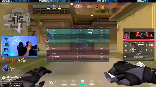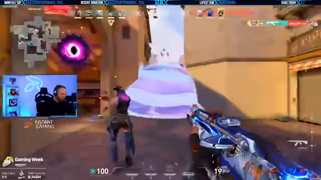 02:53:37Während des Valorant-Spiels treten technische und spielinterne Probleme auf. Einmal wird erwähnt, dass die Twitch-Übertragung zweimal zu hören ist. Später stellt der Streamer fest, dass die Cypher-Kamera bei Gegnern fälschlicherweise dauerhaft angezeigt wird, obwohl sie eigentlich getötet wurde, und vermutet einen Bug. Auch ein sogenannter 'Bad Revive', bei dem ein Mitspieler in einer ungünstigen Position wiederbelebt wird, wird als spielentscheidend kritisiert.