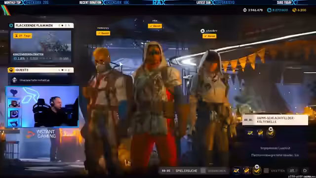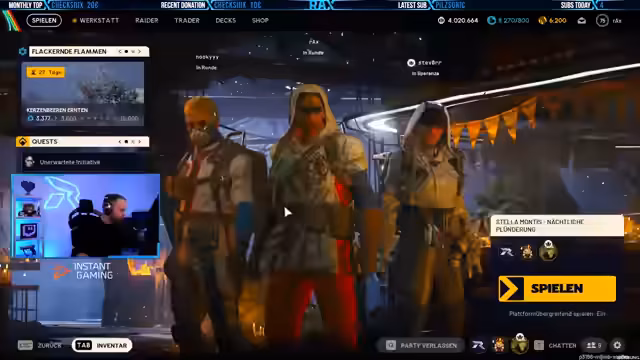 00:00:24Das neue Event wird vorgestellt, bei dem Spieler durch Aktivitäten XP sammeln und Skins freischalten können. Wichtig ist die Erklärung des Miss-Credit-Systems: Die blauen Punkte sind bei 800 gelockt und müssen erst ausgegeben werden, um wieder neue Punkte zu verdienen. Der Streamer demonstriert, dass er 8.270 Punkte hat, aber nur 800 zusätzlich sammeln kann, bis er die Raider-Deck-Belohnungen einlöst. Dieses System sorgt für Verwunderung, da es das Erreichen von Belohnungen zeitlich begrenzt.