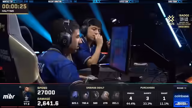 09:17:58In diesem Teil des Streams wird intensiv über das laufende Spiel gesprochen. Es geht um das Analyse der Spielstrategie von M.I.B.R. und NRG. Streamer diskutiert Kill-Situationen, Map-Kontrolle und die Leistung bestimmter Spieler wie Aspas, der als 'in Monster Form' beschrieben wird. Es werden spezifische Spielzüge und Entscheidungen beider Teams kritisch beleuchtet, wobei besonders die Kill-Spreads und die map-Dominanz von M.I.B.R. hervorgehoben werden. Der Kommentator zeigt sich beeindruckt von der Leistung einzelner Spieler und ihrer Fähigkeit, unter Druck zu agieren.
