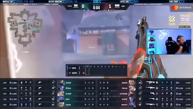 10:03:52In diesem Segment des Streams erleben die Zuschauer aufregende Momente im Spiel. Es geht um technische Pausen und wichtige Spielrunden, die das Spielverhalten beeinflussen. Kommentatoren sind beeindruckt von der Fähigkeit der Spieler, unter Druck zu bestehen und überraschende Wendungen einzuleiten. Besonders wird die Dynamik zwischen M.I.B.R. und NRG hervorgehoben, wobei Teams ihre Strategien anpassen und gegenseitig dominieren. Die Spannung steigt mit jeder Runde, was den Zuschauern ein aufregendes Erlebnis bietet.