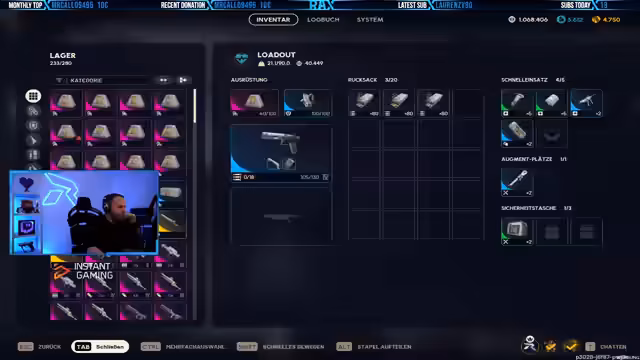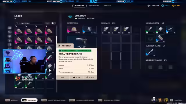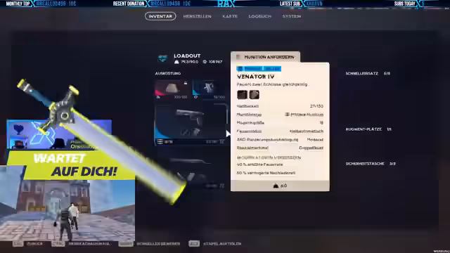 01:46:00Der Streamer berichtet über seine Bemühungen, das Inventar zu verwalten und zu sortieren. Er erwähnt Probleme mit Durcheinandergeratenen Merch-Stacks und unterstreicht die Wichtigkeit des Inventarwerts, der auch Münzen umfasst. Aktuell verfügt er über einen Inventarwert von fast einer Million. Er diskutiert die Ausrüstung für die bevorstehende Mission und betont, dass Inventarwert und Munition entscheidend sind. Es werden verschiedene Waffen wie Venator, Smokes und Heavy Nails erwähnt. Er überlegt, ob blaue Verbände mitzunehmen sind oder ob man eher Bälle lootet und Fights meidet. Die Frage bleibt, wie viel Munition man wirklich benötigt, um überleben und Erfolg zu haben.