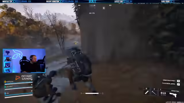 02:45:48Das Team befindet sich auf einem Dach und beobachtet ein anderes Team, das auf dem Dach gegenüber kämpft. Es kommt zu einem taktischen Duell, bei dem sie versuchen, die Gegner von hinten anzugreifen. Der Streamer koordiniert das Vorgehen, indem er队友 auffordert, bestimmte Positionen zu halten und auf seine Zeichen zu warten. Es kommt zu mehreren Feuergefechten, bei denen sie Gegner eliminieren, aber auch selbst unter Beschuss geraten. Die Situation ist unübersichtlich, und sie müssen schnell entscheiden, ob sie sich zurückziehen oder den Angriff fortsetzen sollen.