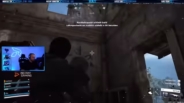 01:01:42Die Spieler erkunden ein Gebiet, in dem sie eine Quest vermuten, die das Befestigen von Dachplatten an einer Radarkonstruktion beinhaltet. Während der Erkundung stößt ein Spieler auf einen versteckten Tresor und aktiviert einen Schalter. Es stellt sich heraus, dass vier solcher Schalter gefunden werden müssen, um eine Kellertür zu öffnen. Eine feindliche Drohne entdeckt die Spieler, was die Situation gefährlich macht. Die Suche nach den verbleibenden Schaltern wird fortgesetzt, wobei vermutet wird, dass sich der letzte Schalter auf dem Dach befindet. Die Spieler müssen vorsichtig agieren, um der Drohne auszuweichen und die Schalter zu aktivieren. Die Spannung steigt, als die Drohne immer näherkommt und die Spieler sich verstecken müssen, um nicht entdeckt zu werden. Die erfolgreiche Aktivierung aller Schalter ist entscheidend, um den versteckten Bereich zu erreichen und wertvollen Loot zu sichern.