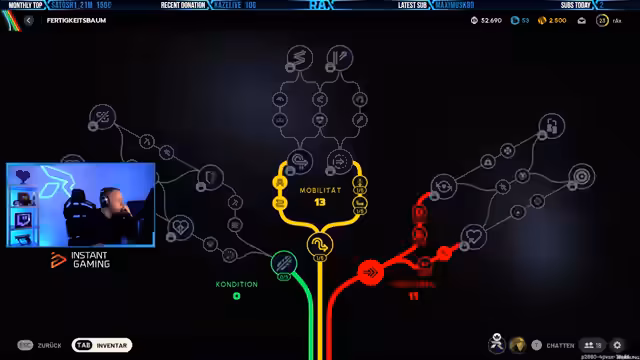 02:46:18Es wird über die Verteilung von Skill-Punkten diskutiert, insbesondere welche Fähigkeiten nur einmal gelevelt werden sollten, wie 'Schwung mitnehmen' und 'Kleiner Spaziergang'. Die Spieler tauschen sich über die Effizienz bestimmter Skills aus. Ein Spieler äußert sich überrascht über die geringe Anzahl an Skill-Punkten, die für bestimmte Fähigkeiten zur Verfügung stehen. Zudem wird die Mitnahme von 'Svita-Spray' thematisiert, wobei ein Spieler betont, dass es nicht immer mitgenommen wird, obwohl es zum Überleben nützlich sein kann. Die Übersichtlichkeit der Spielmenüs wird kritisiert, da es schwierig ist, den Überblick über die Funktionen der verschiedenen Gegenstände zu behalten.